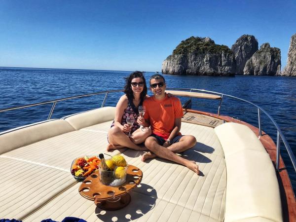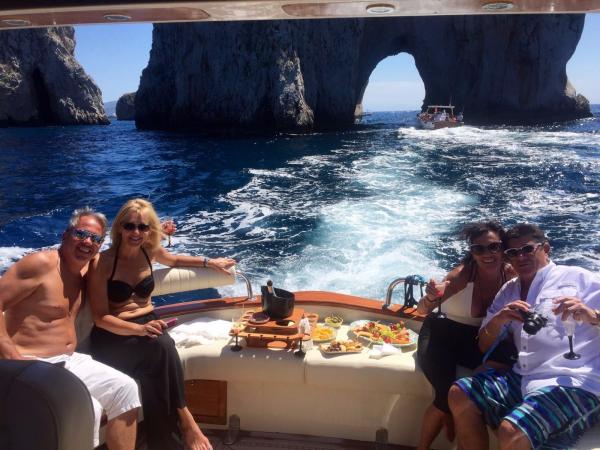 Giovanni will spoil you whilst cruising around the Island and stopping at all best locations. Not only he will stop off at all the must-see spots starting from the Blue grotto followed by the Green grotto and all the way to the magical arch of love at the “Faraglioni Rocks”. He will also show you some of his very own favourite spots to swim, dine or even just enjoy a glass or two.